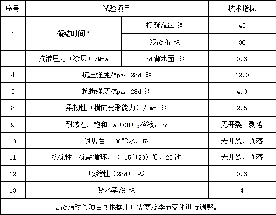 執行國家建材行業標準《聚合物防水漿料》I型(通用型)物理力學性能